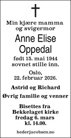 | Mormors død | Anne Elise Rognerud 1. december 1954 (Alder 10 år) |
